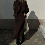 Cappotto da donna in lana con collo a sciarpa e cintura