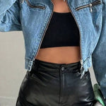 Giacca corta con cerniera in denim alla moda