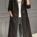 Giacca impermeabile da donna – Vestibilità comoda – Lunghezza al ginocchio – Cappuccio – Maniche lunghe – Tasche funzionali – Chiusura con zip