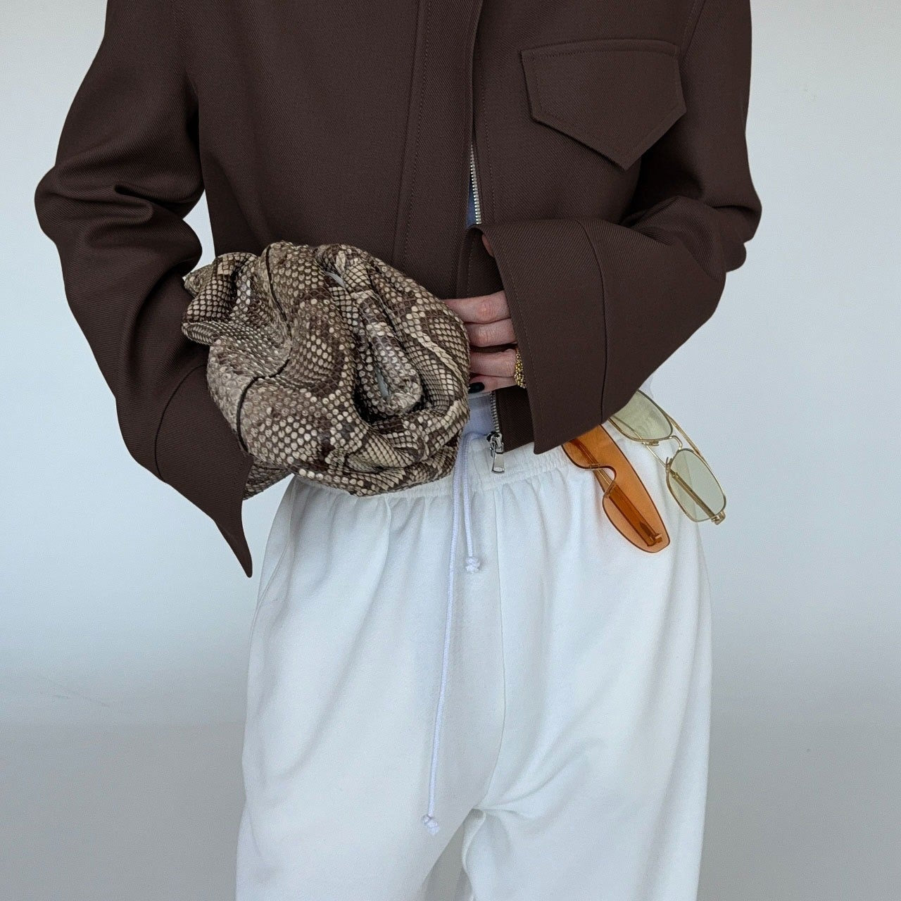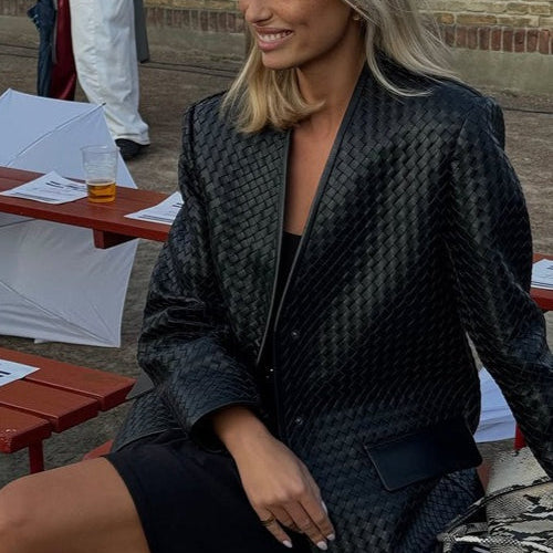 Giacca a maniche lunghe in pelle intrecciata con scollo a V