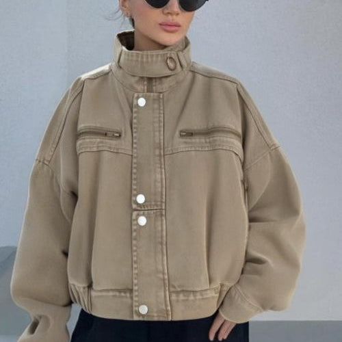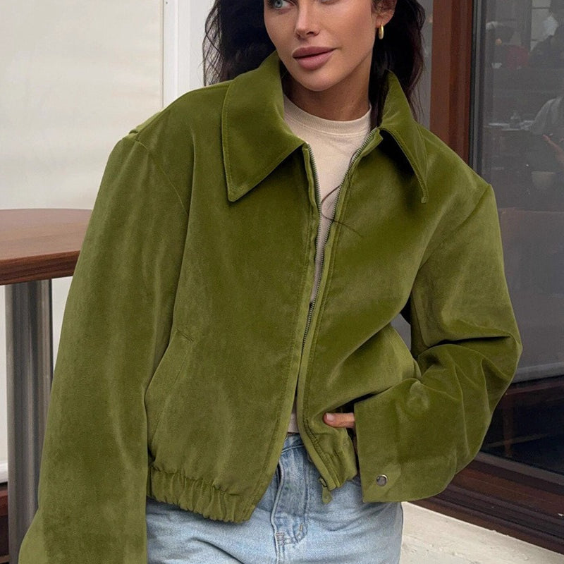 Giacca casual elegante in pelle scamosciata a maniche lunghe