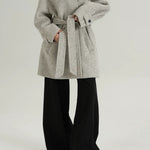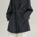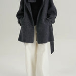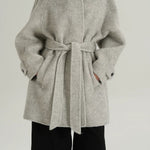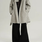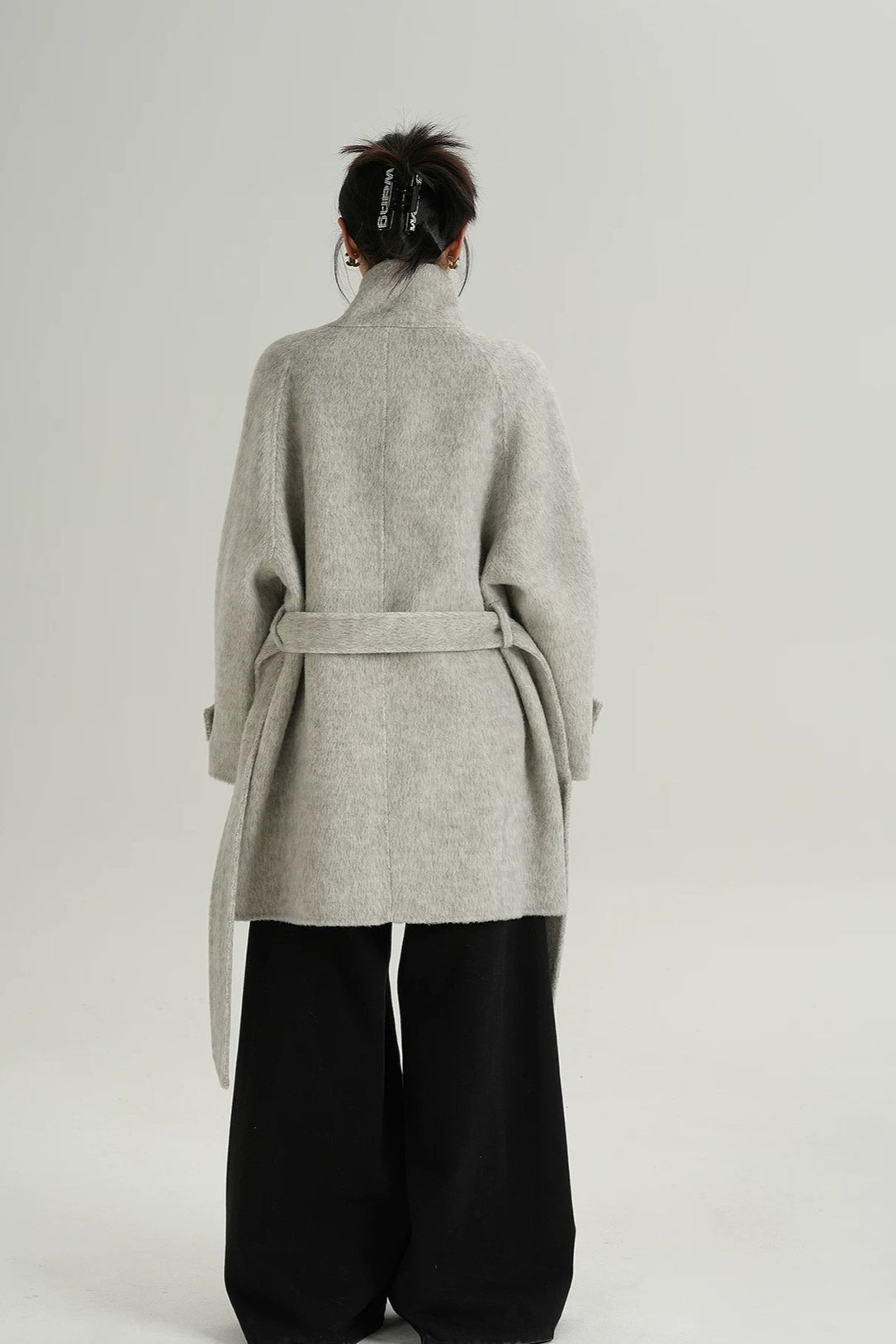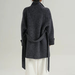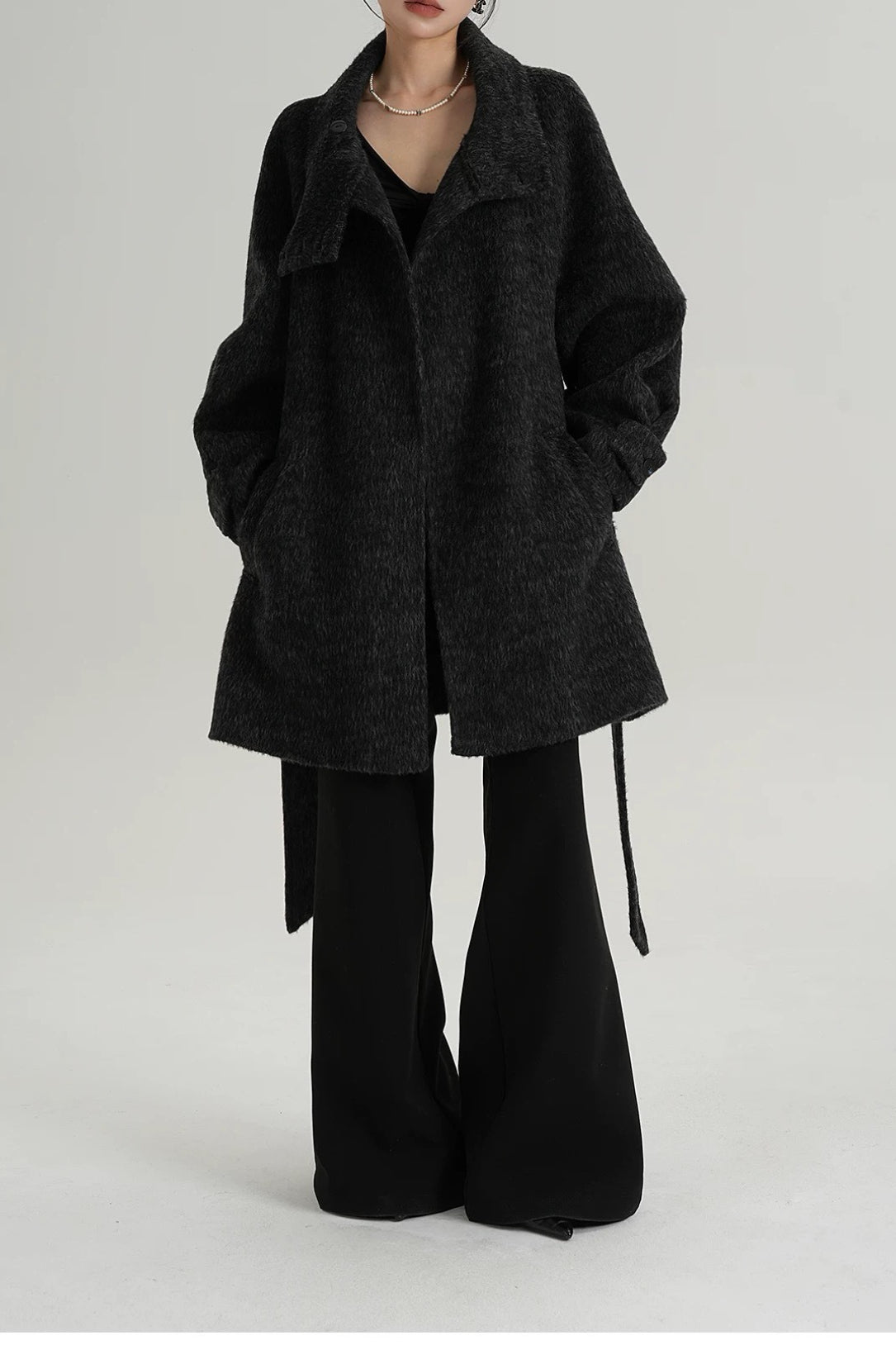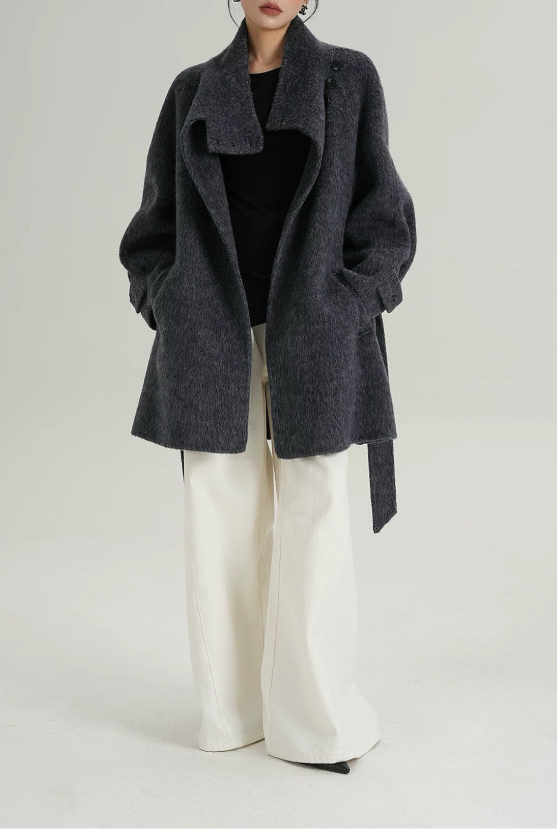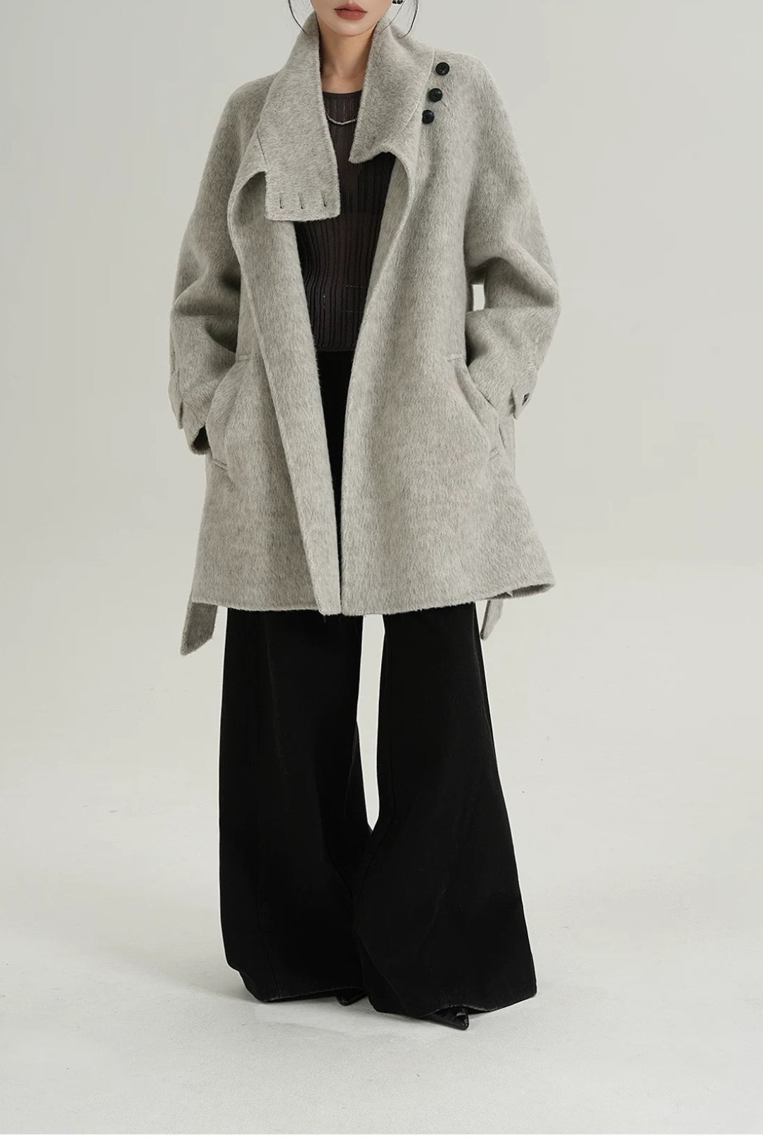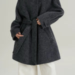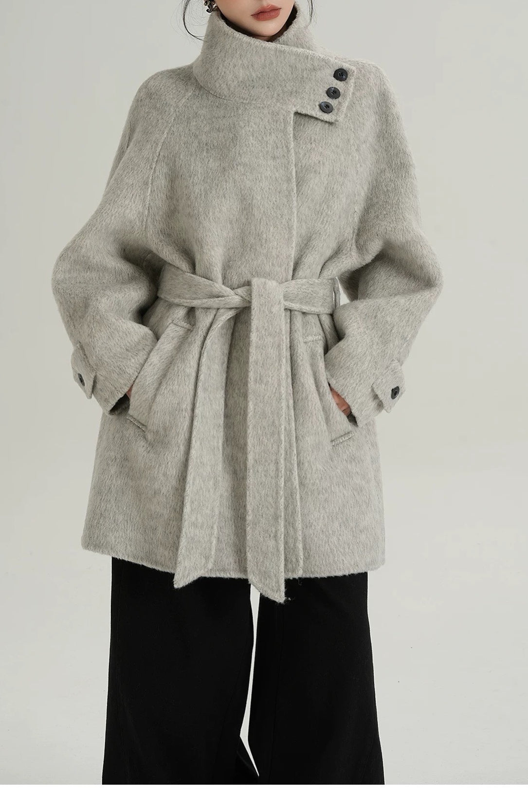 Cappotto a collo alto in lana calda e ampia, elegante e solido