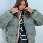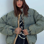 Cappotto alla moda con ricamo a croce effetto consumato