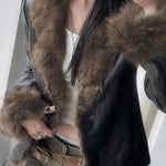 Cappotto caldo aderente con colletto in pelliccia sintetica in pelle