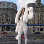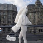 Cappotto corto caldo in peluche tinta unita con cappuccio