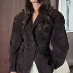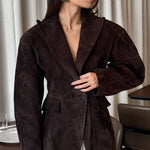 Cappotto elegante in stile blazer in finta pelle scamosciata
