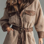 Cappotto retrò con cintura e tasche in pile spesso in PU