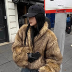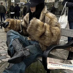 Cappotto corto e caldo in pelliccia sintetica di procione