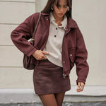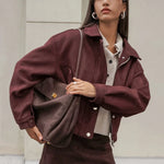 Cappotto retrò oversize con colletto in pelle scamosciata marrone rossiccio