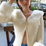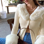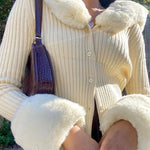 Cardigan a maniche lunghe in maglia con colletto peloso