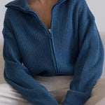 Cardigan ampio con cerniera e revers