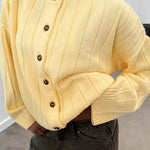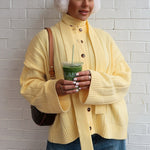 Cardigan in maglia a coste gialle con scollo rotondo