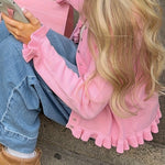 Cardigan in maglia a maniche lunghe con bordi in pizzo rilassato e tinta unita
