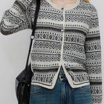 Cardigan in maglia con bottoni e scollo rotondo in jacquard vintage