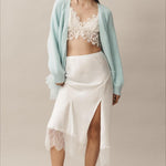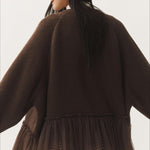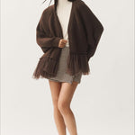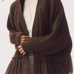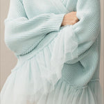 Cardigan in maglia trasparente con volant