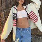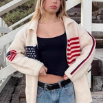 Cardigan in maglia elegante con stampa bandiera calda