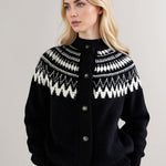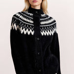Cardigan in maglia retrò con scollo rotondo e motivo geometrico color block Fair Isle