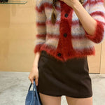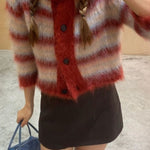 Cardigan corto a righe con scollo tondo