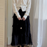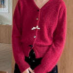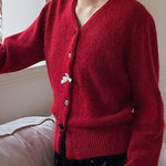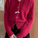 Cardigan con scollo a V, fiocco e bottoni
