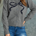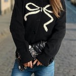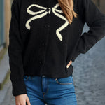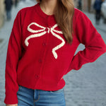 Cardigan rotondo jacquard con fiocco solido