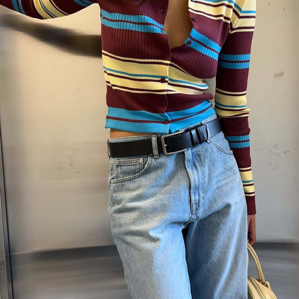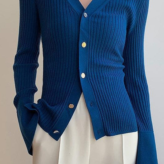 Cardigan elegante in maglia sottile con scollo a V blu