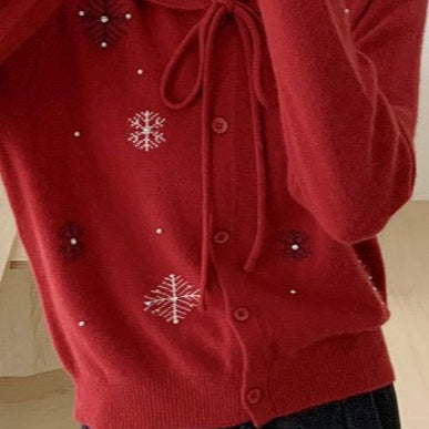 Cardigan con colletto annodato a fiocco di neve con perline