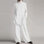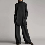 Completo da casa da donna – Maglia morbida – Top oversize a collo alto – Pantaloni a gamba larga