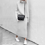 Completo gonna e maglione da donna – Maglia a coste – Collo alto – Taglio midi dritto