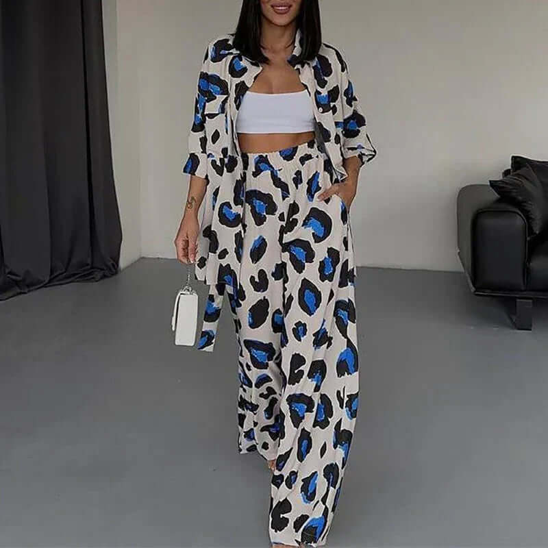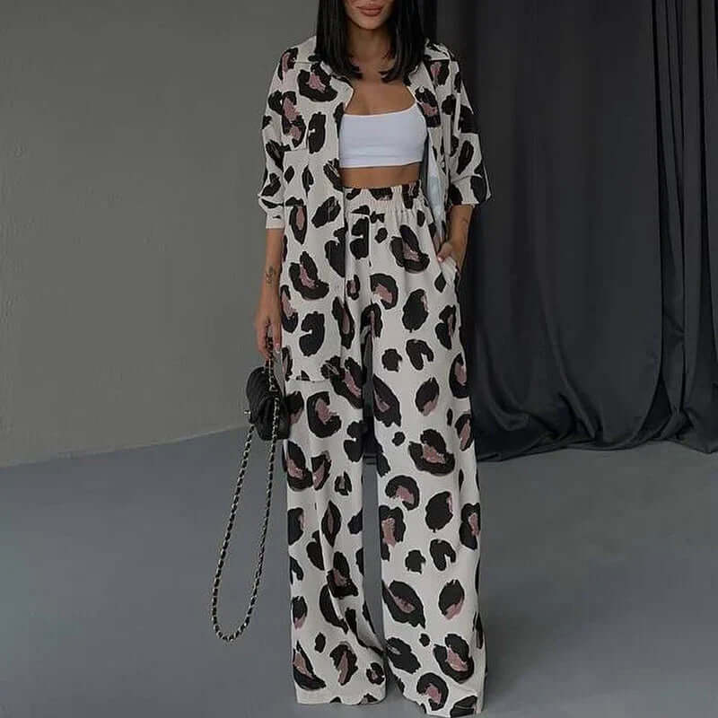 Completo due pezzi da donna - Tessuto leggero - Stampa leopardata - Vestibilità comoda