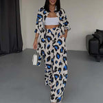 Questo completo da donna in due pezzi presenta una vestibilità comoda in tessuto leggero con stampa leopardata.