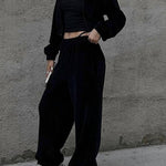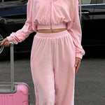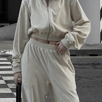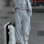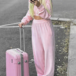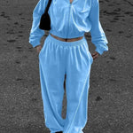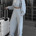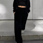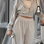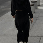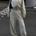 Completo da jogging da donna - Giacca corta con zip e cappuccio - Pantaloni a vita alta