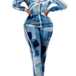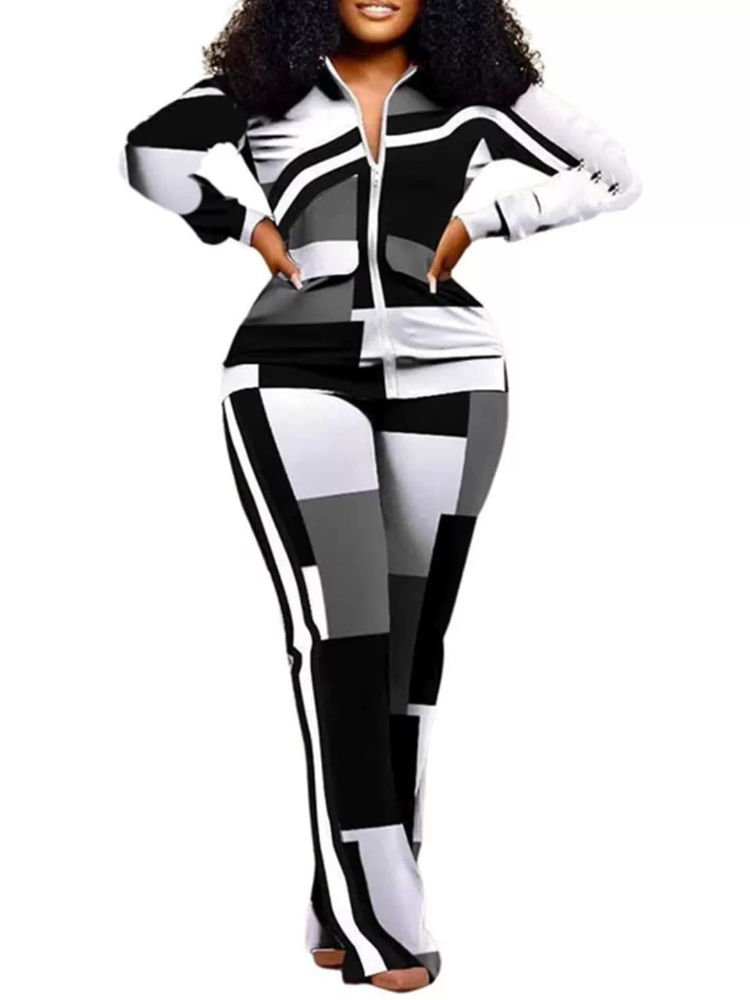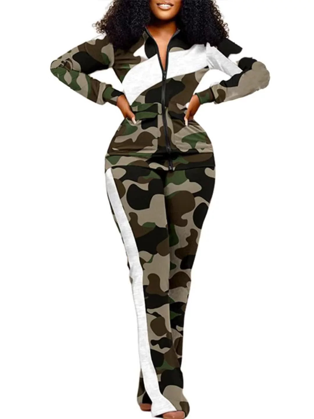 Completo due pezzi pantaloni da donna – Vestibilità slim – Stampa animalier – Cerniera frontale