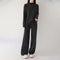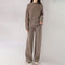 Questo completo in due pezzi offre un look rilassato e fluido, perfetto per il comfort quotidiano. Presenta un classico girocollo e maniche lunghe, completato da pantaloni a gamba larga con coulisse per una vestibilità ideale. Pensato per rilassarsi a casa o per le uscite informali, questo completo unisce praticità ed eleganza sobria. Il suo design curato garantisce una vestibilità comoda e versatile.
