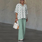 Outfit casual da donna – Camicia ampia a pois – Pantaloni larghi in cotone fluido