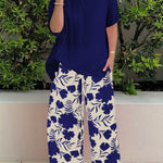 Pantaloni da donna a gamba larga – Vestibilità rilassata – Stampa floreale – Tessuto leggero e traspirante