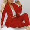 Esalta il tuo guardaroba con il capo di punta di cui ogni donna sicura di sé ha bisogno: il nostro splendido tailleur rosso. Progettato per fare colpo, questo tailleur combina una sartorialità autorevole con una tonalità rosso fuoco impossibile da ignorare. Dettagli del blazer: una costruzione sartoriale e precisa garantisce una vestibilità che definisce la silhouette, trasudando professionalità e grazia. I lussuosi bottoni dorati aggiungono un tocco di eleganza al doppio petto e ai polsini, assicurando che il tuo stile brilli da ogni angolazione. Realizzato in tessuto di alta qualità che offre comfort e resistenza, sia che tu stia dominando la sala riunioni o partecipando a un evento di alto profilo. Dettagli dei pantaloni: un design elegante e dritto completa l'audace blazer, creando una silhouette coesa e potente. Una comoda vita media e un tessuto leggermente elasticizzato offrono comfort e libertà di movimento per tutto il giorno. Completa il look: una delicata canotta in pizzo ammorbidisce delicatamente l'insieme, bilanciando potenza e femminilità. Completa il look con la cintura inclusa per stringere la vita e aggiungere un ulteriore tocco di lusso al tuo outfit.