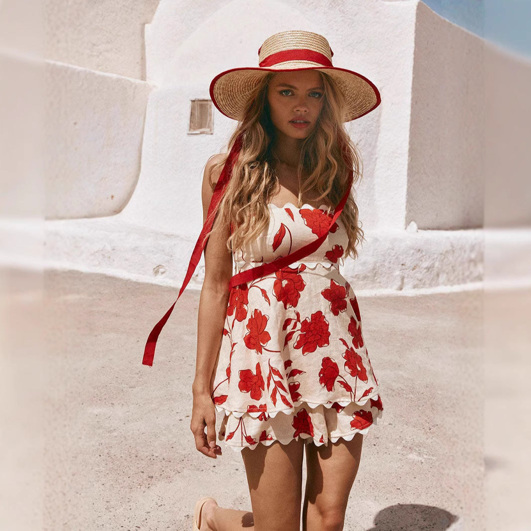 Completo due pezzi da donna – lino traspirante – vestibilità comoda – stampa floreale – dettagli in pizzo
