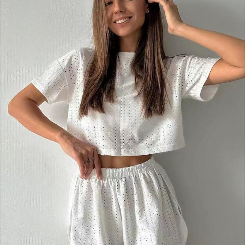 Completo due pezzi da donna – Top corto e pantaloncini – Tessuto traspirante – Vestibilità comoda