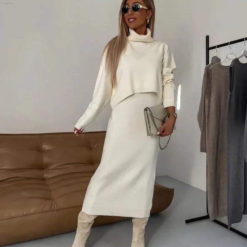 Outfit da donna – Maglione dolcevita oversize e gonna longuette a tubino – Maglia comoda