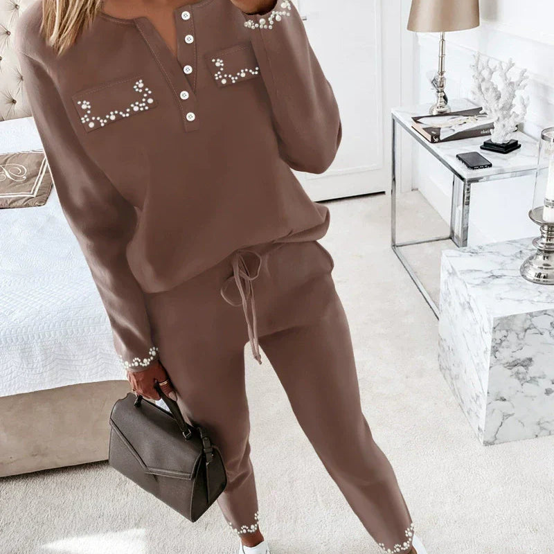 Completo due pezzi da donna - Maglia morbida - Vestibilità rilassata - Dettagli in perla