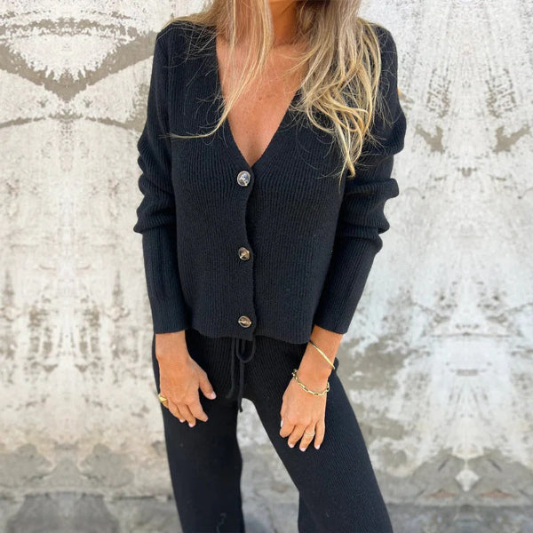 Completo da casa da donna – Maglia a coste – Vestibilità comoda – Top con bottoni