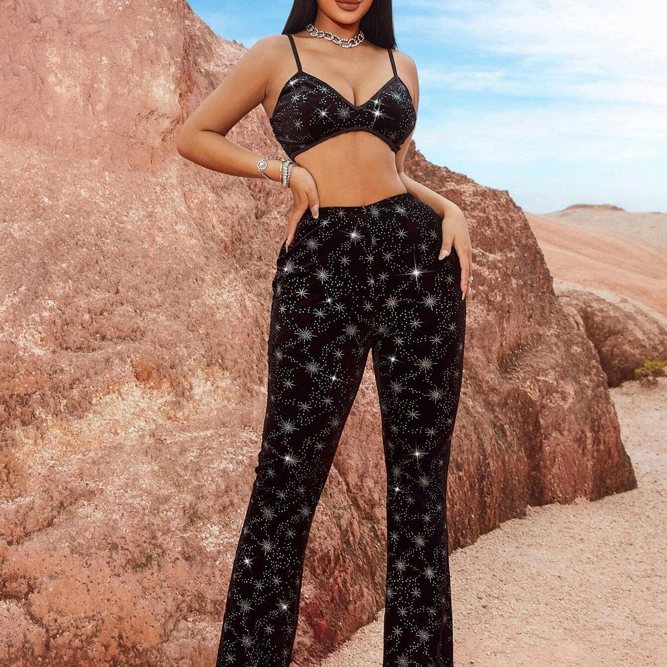 Completo due pezzi Celestial Night: chic, abbagliante, comodo per le donne