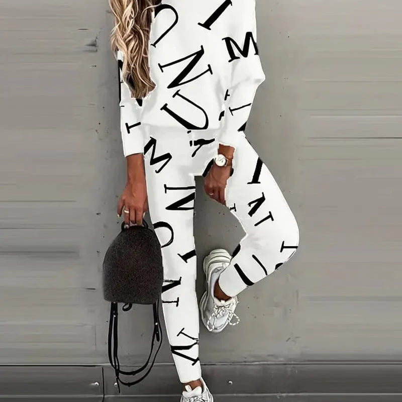 Completo da donna – Maglia a coste – Comodo ed elegante – Maglia a maniche lunghe con pantaloni aderenti