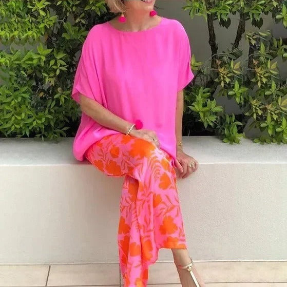 Pantaloni da donna a gamba larga – Vestibilità rilassata – Stampa floreale – Tessuto leggero e traspirante