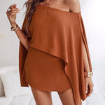 Questo completo coordinato da donna, composto da un top corto con scollo Bardot e maniche ampie e una minigonna, è realizzato in tessuto intrecciato testurizzato.