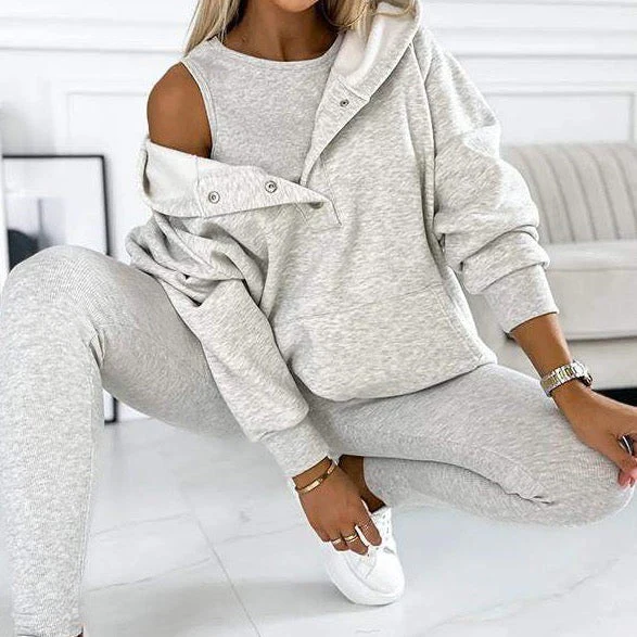 Eleganza rilassata con il completo loungewear Francis-Laurent Soft Off-Shoulder. Maglia morbida, top con spalle scoperte e pantaloni aderenti per il massimo comfort e uno stile moderno. Perfetto per rilassarsi.