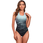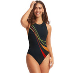 Costume da bagno da donna - Taglio a collo alto - Motivi ondulati vivaci - Silhouette elegante