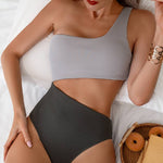 Costume da bagno da donna – Intero – Scollatura asimmetrica – Sgambatura alta – Tessuto a costine