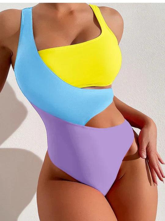 Costume da bagno da donna a vita alta color-block - Elegante e comodo