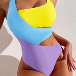 Fai una dichiarazione con questo costume da bagno color-block a vita alta, elegante e comodo.